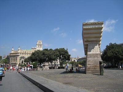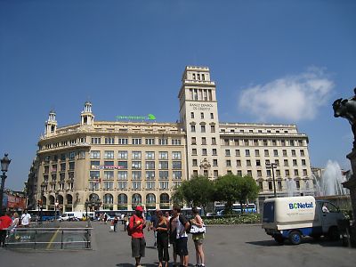 まいど バンコ エスパニョール Monument Francesc Macià 越しに