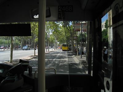 モンジュイックの丘のミロ美術館へ行くのにちょうどいいバスを見つけた。 しかし、バス停が分からず探している内に、その50番バスは行ってしまった。 20分待ってようやく乗った。