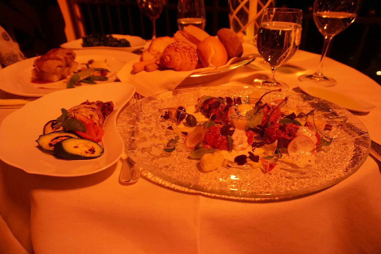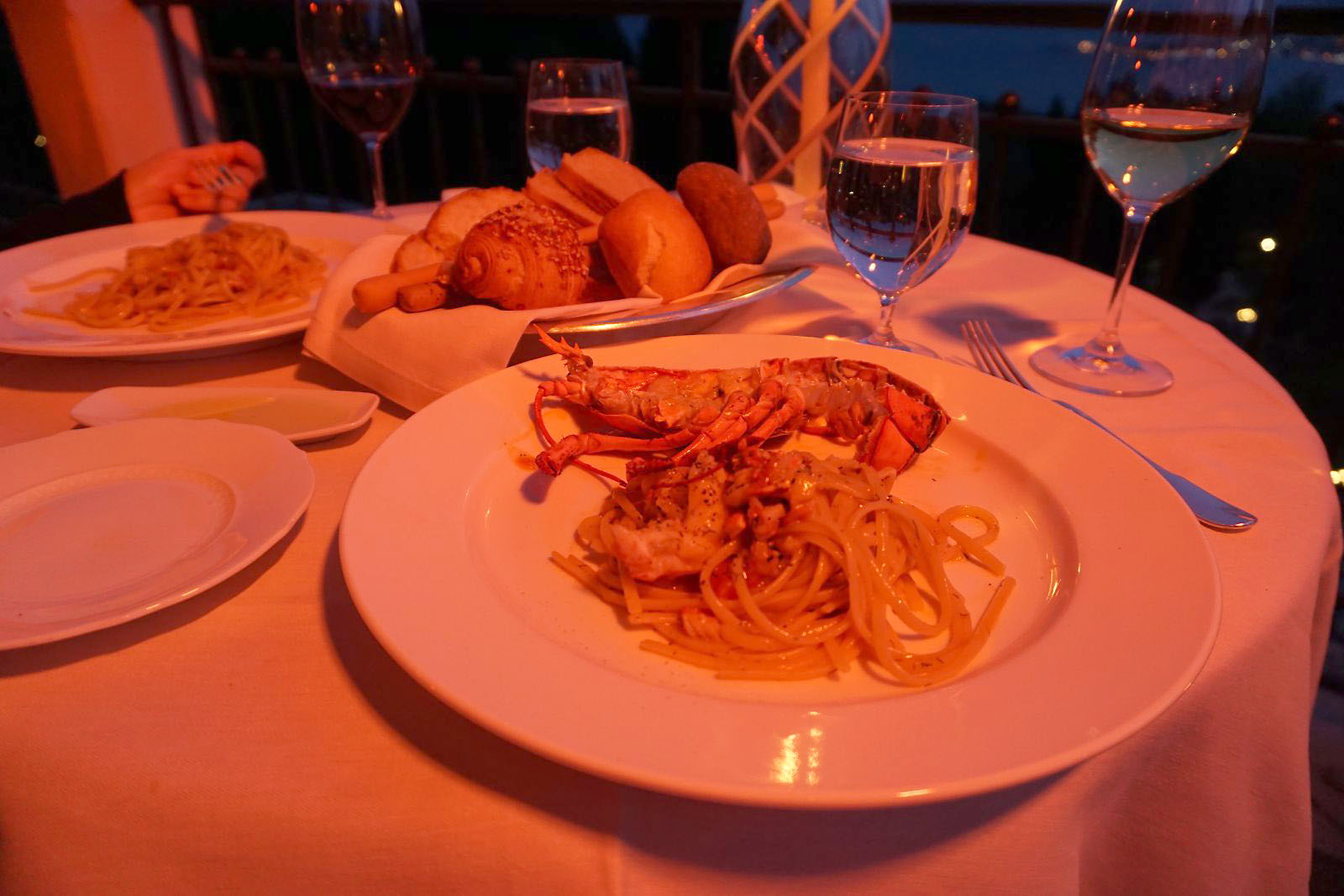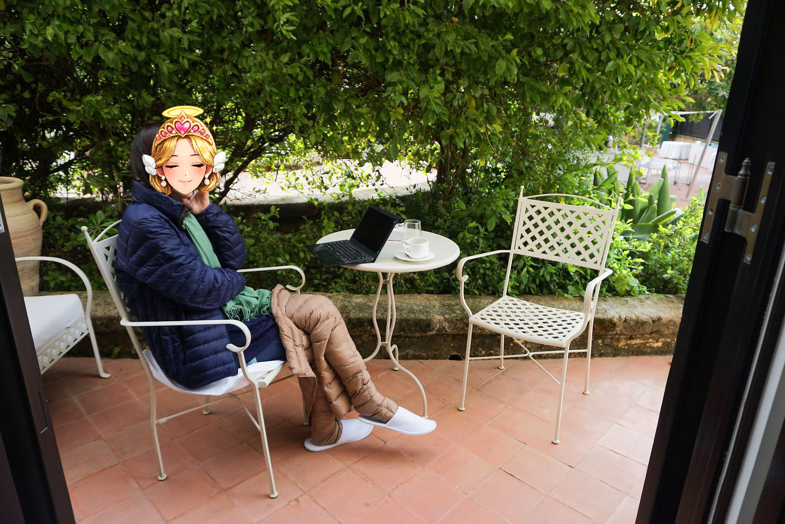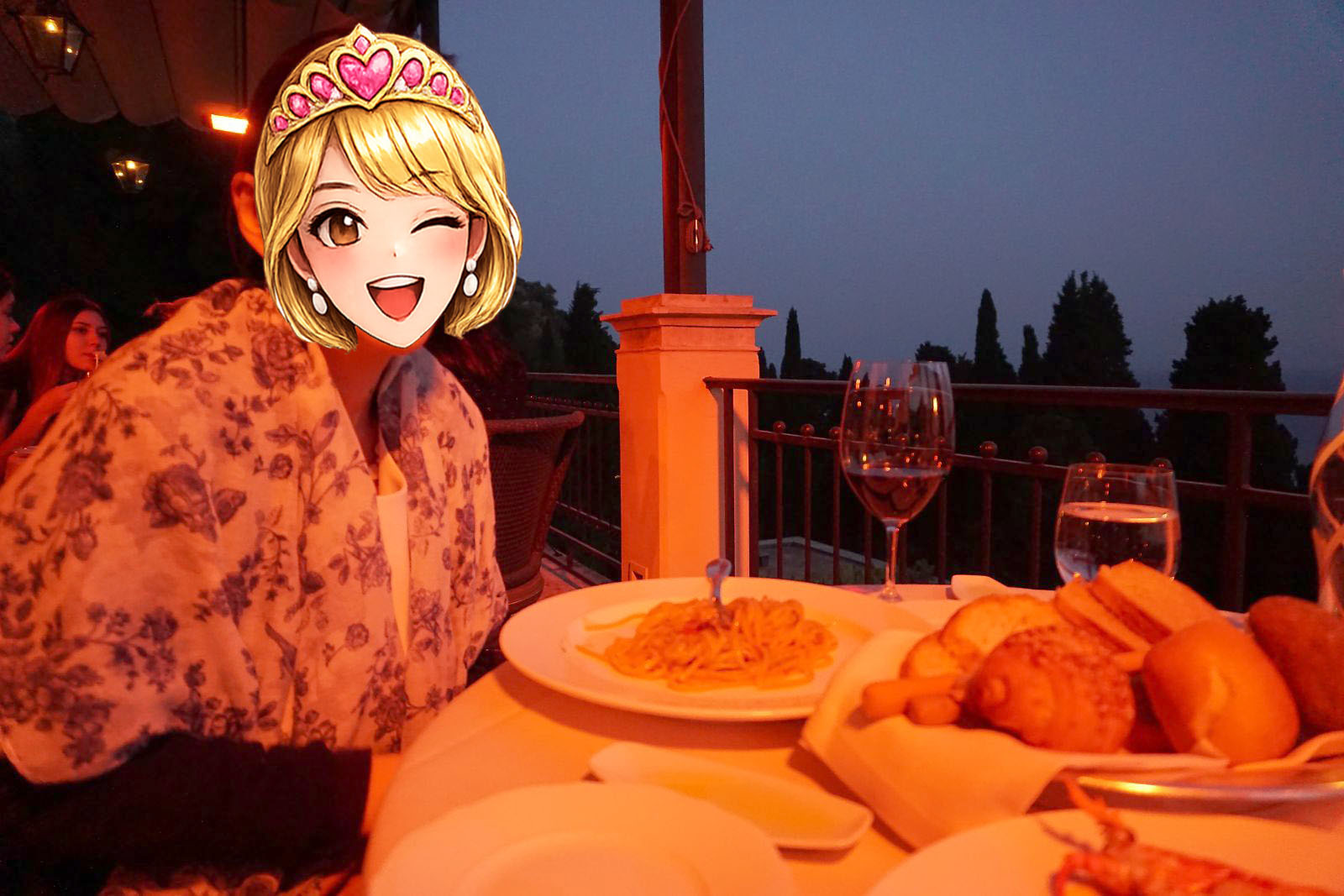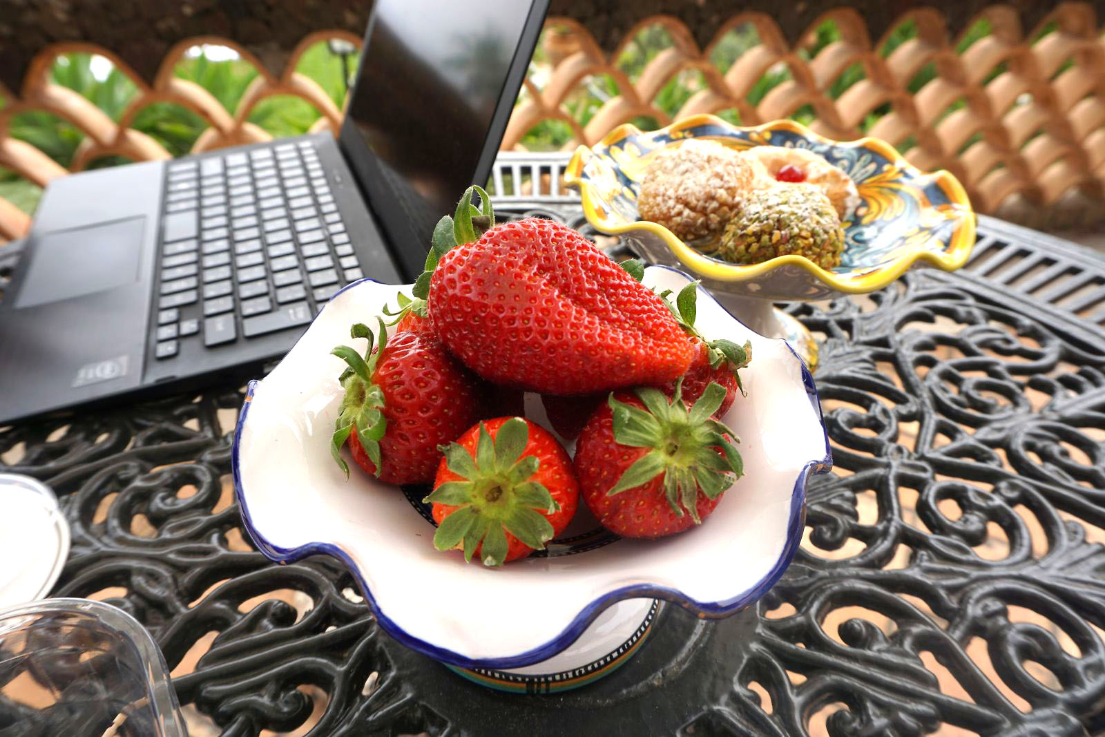 テラスに出ると高台から見渡すタオルミーナの町と遥かエトナ山が見えていた。