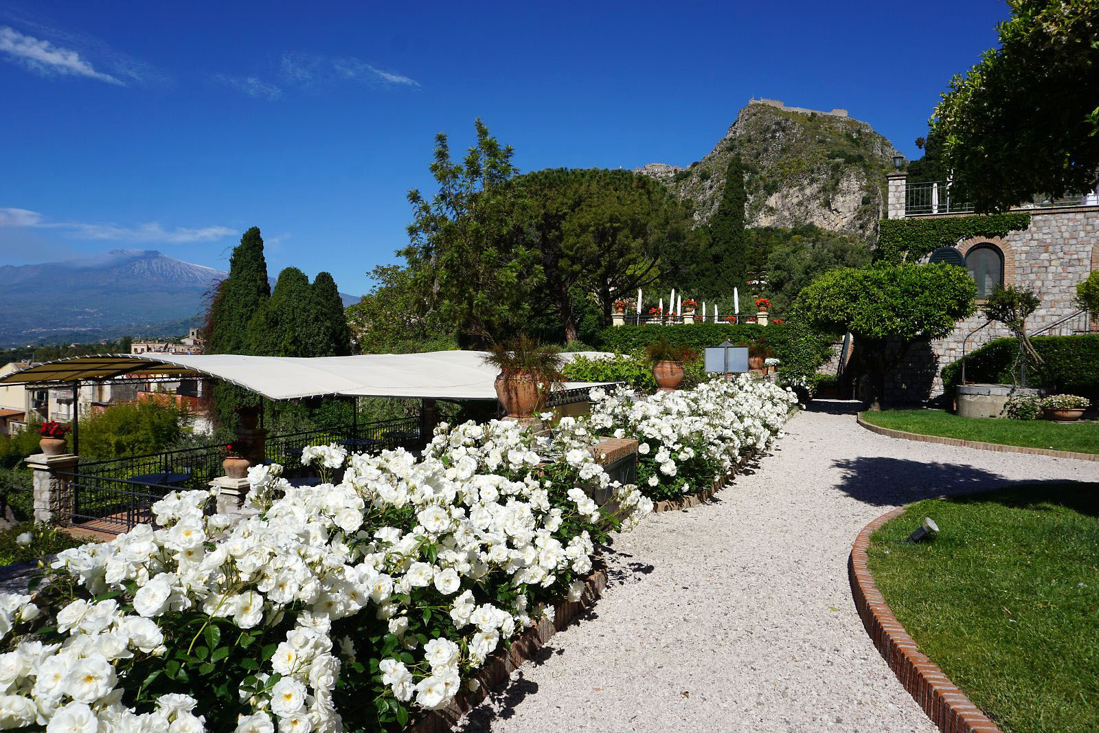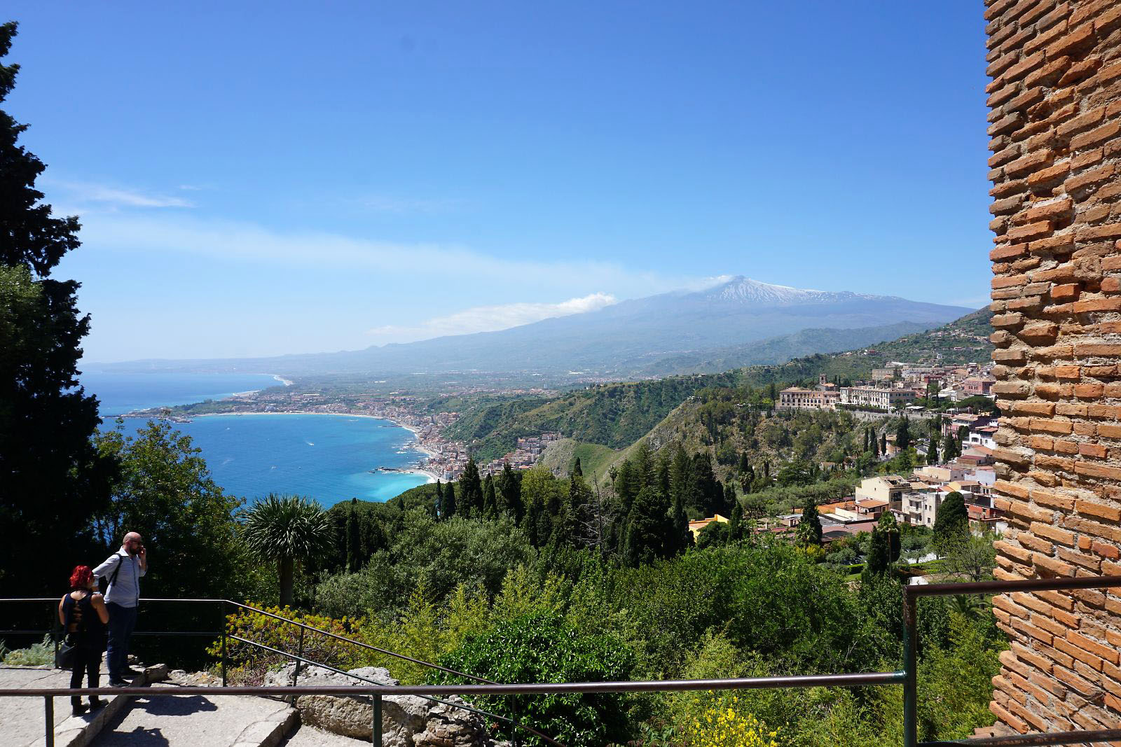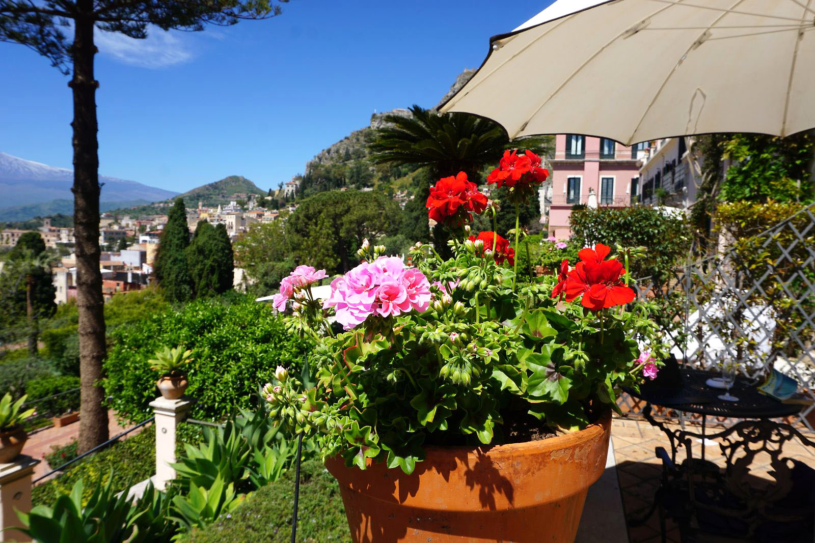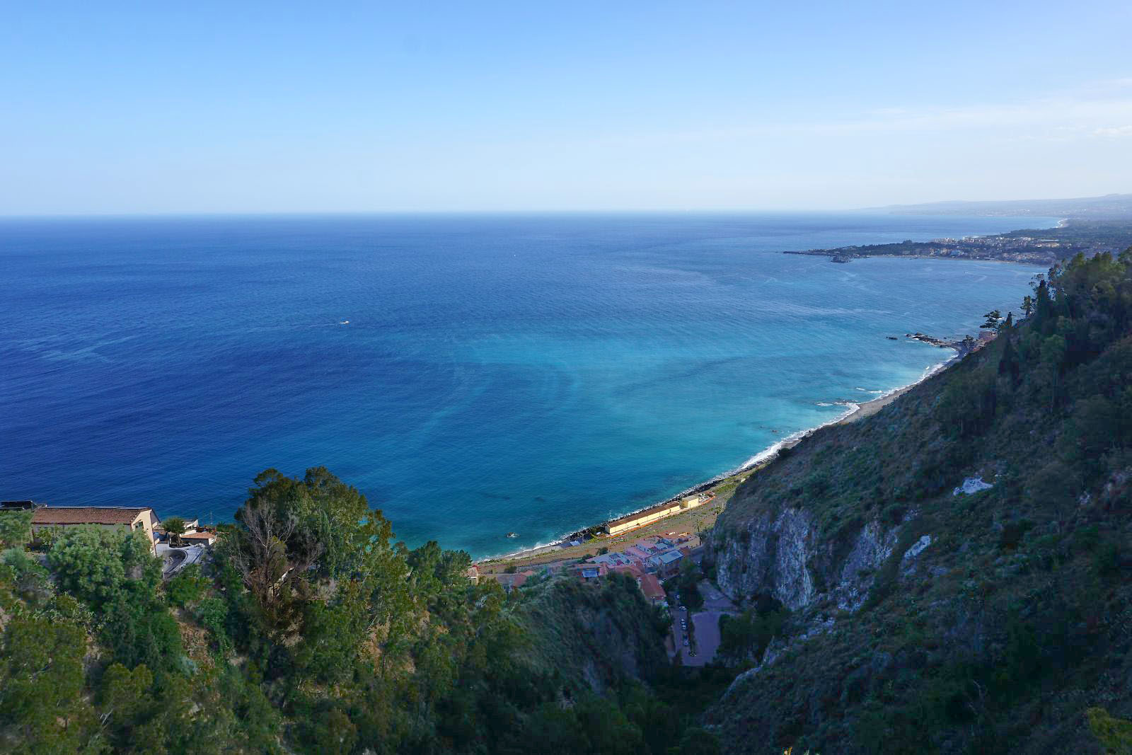 目が覚めテラスに出てみると、今日はかすみが晴れ、エトナ山がくっきりと見えていた。