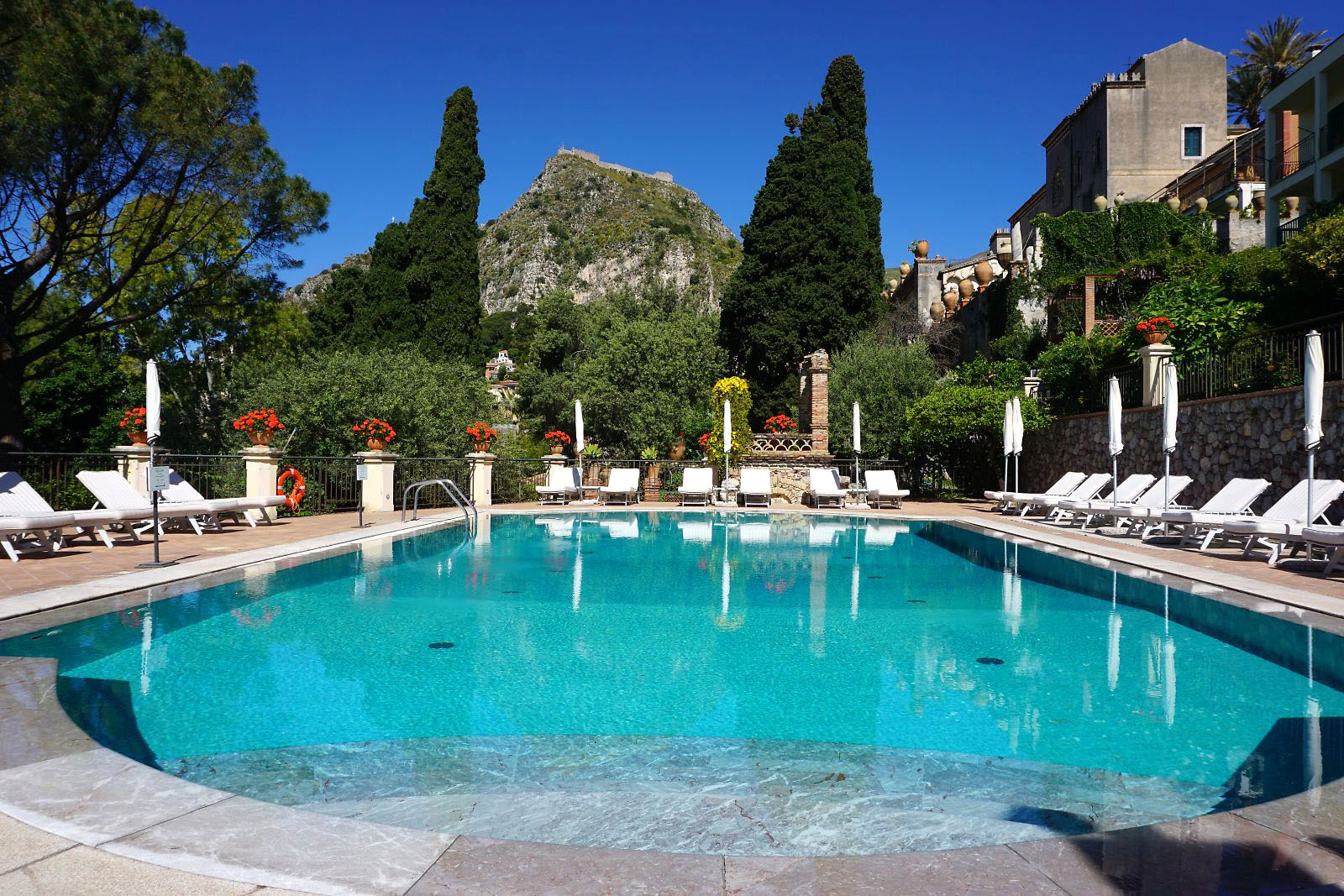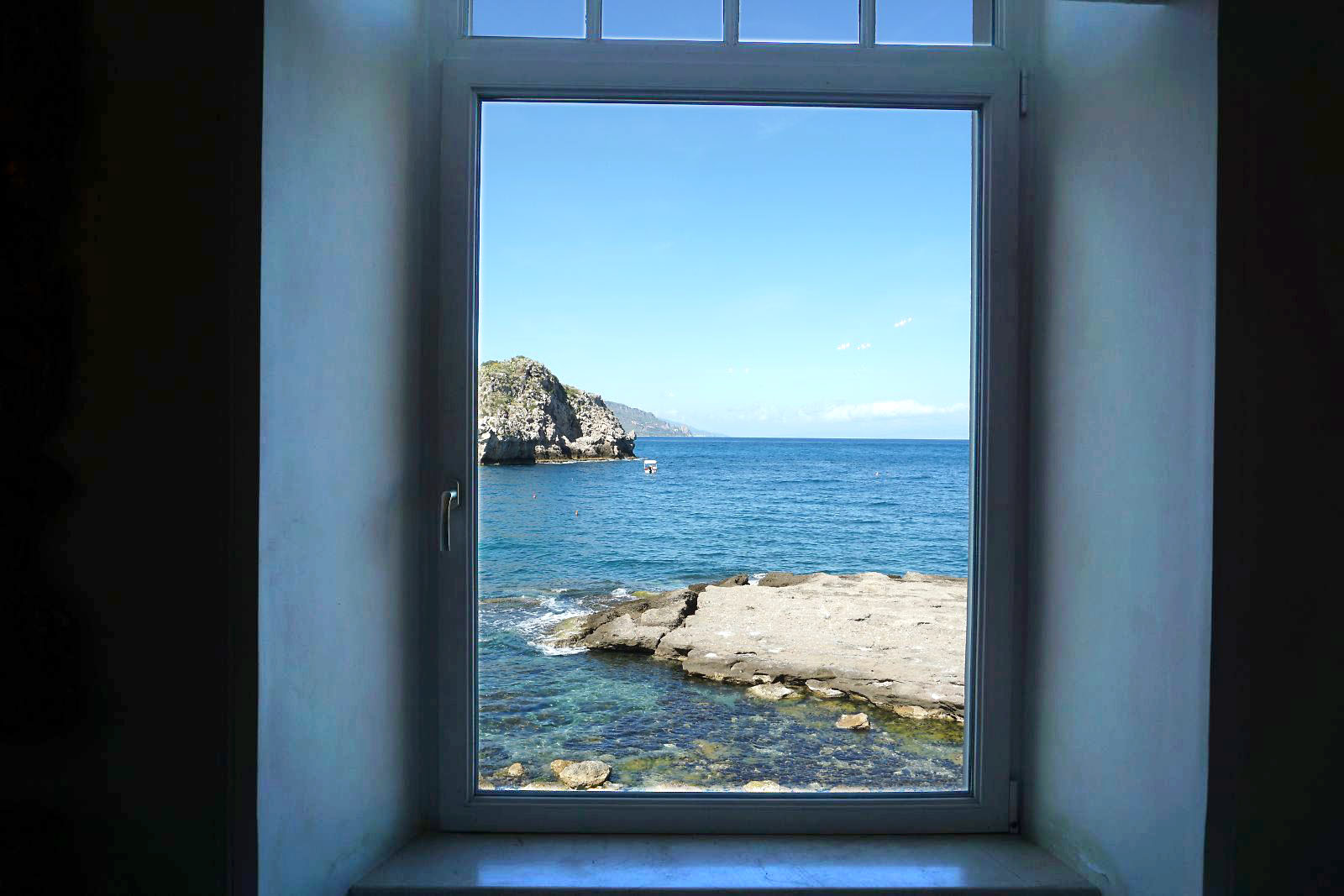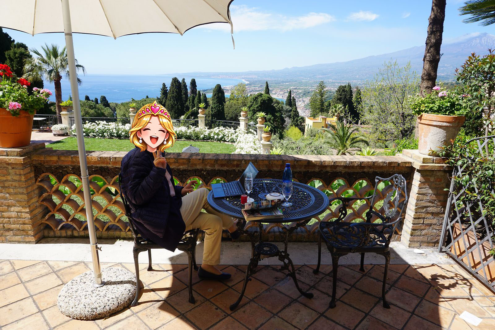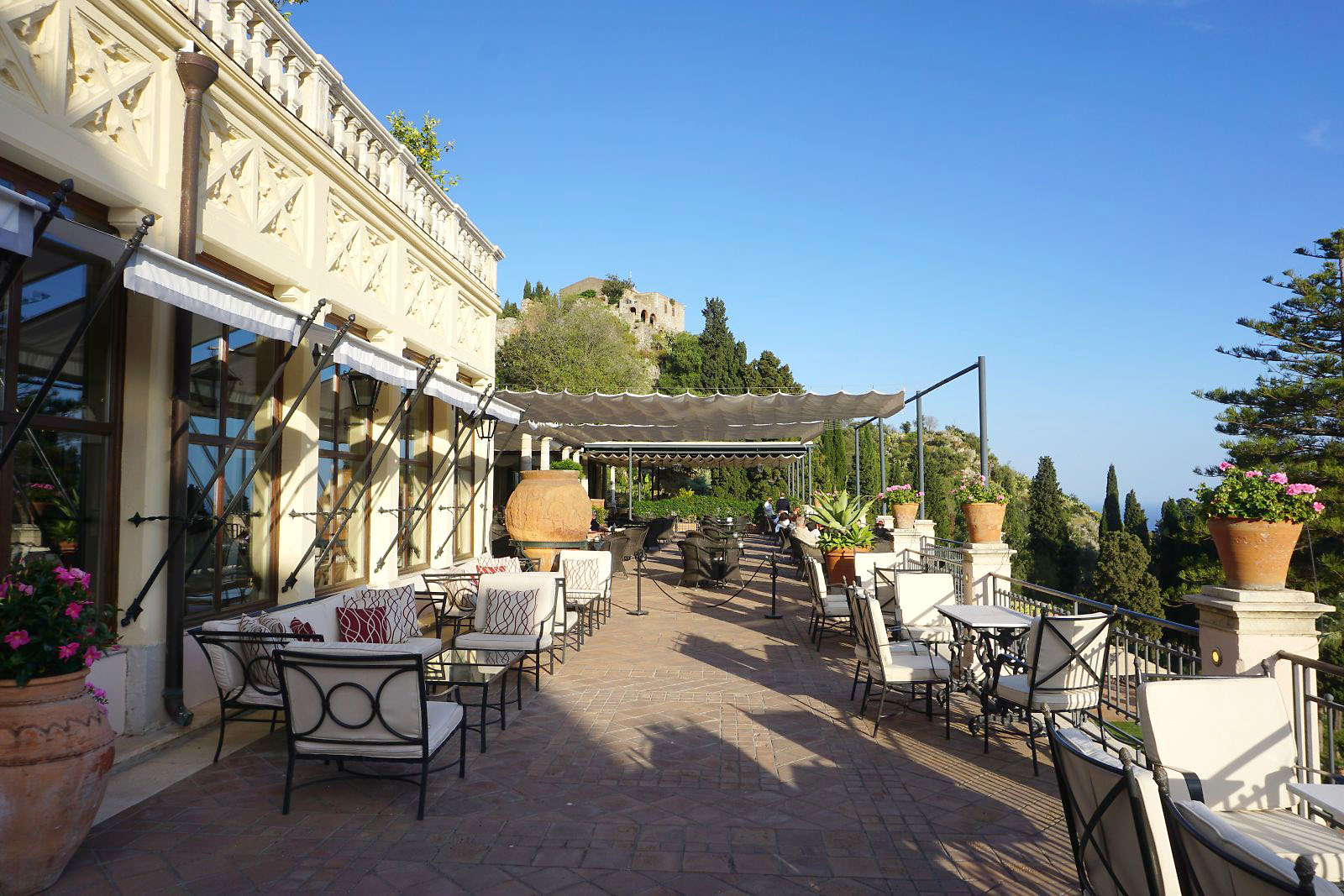 目が覚めテラスに出てみると、今日はかすみが晴れ、エトナ山がくっきりと見えていた。
