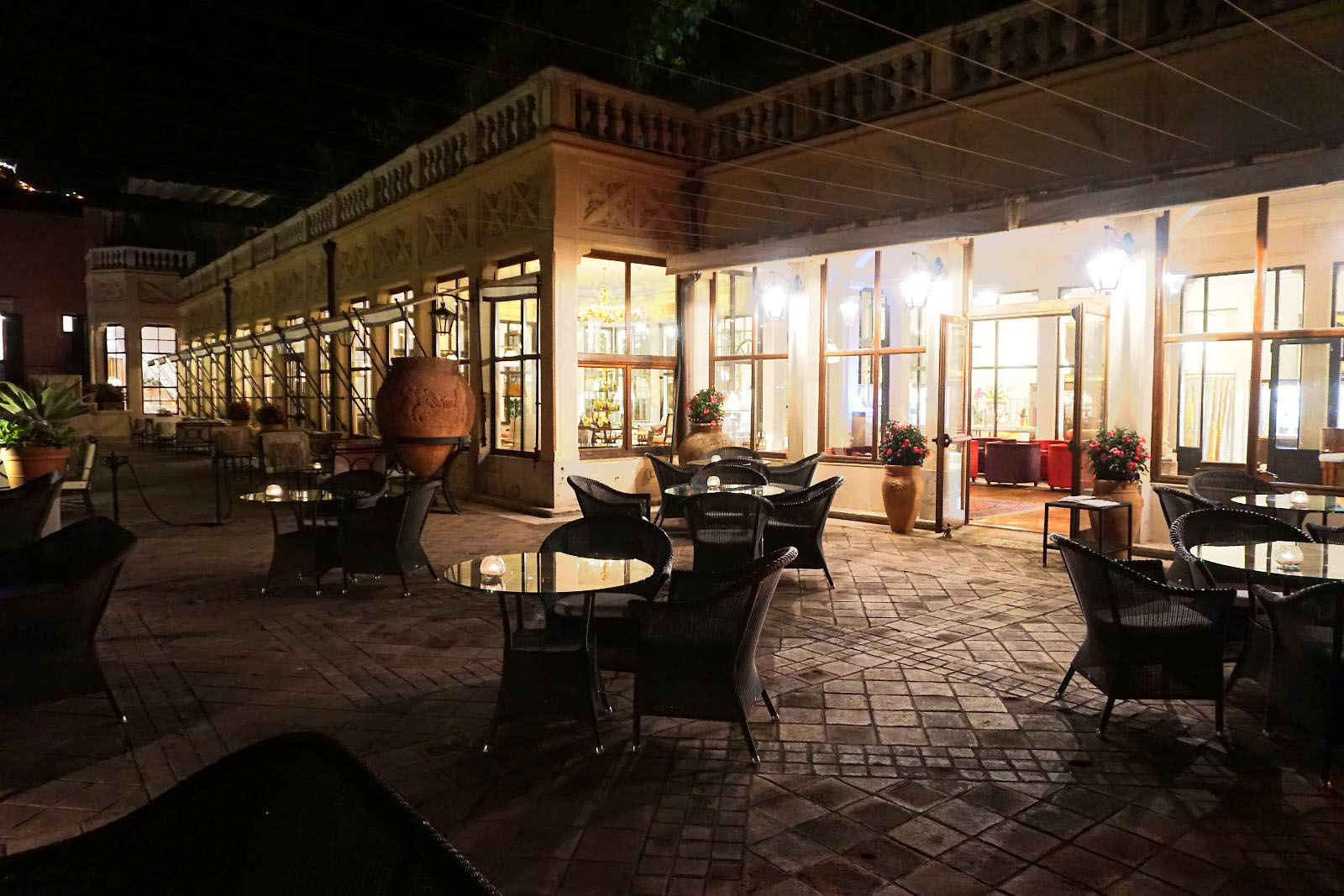昨夜と同じダイニングのテラス席へ。