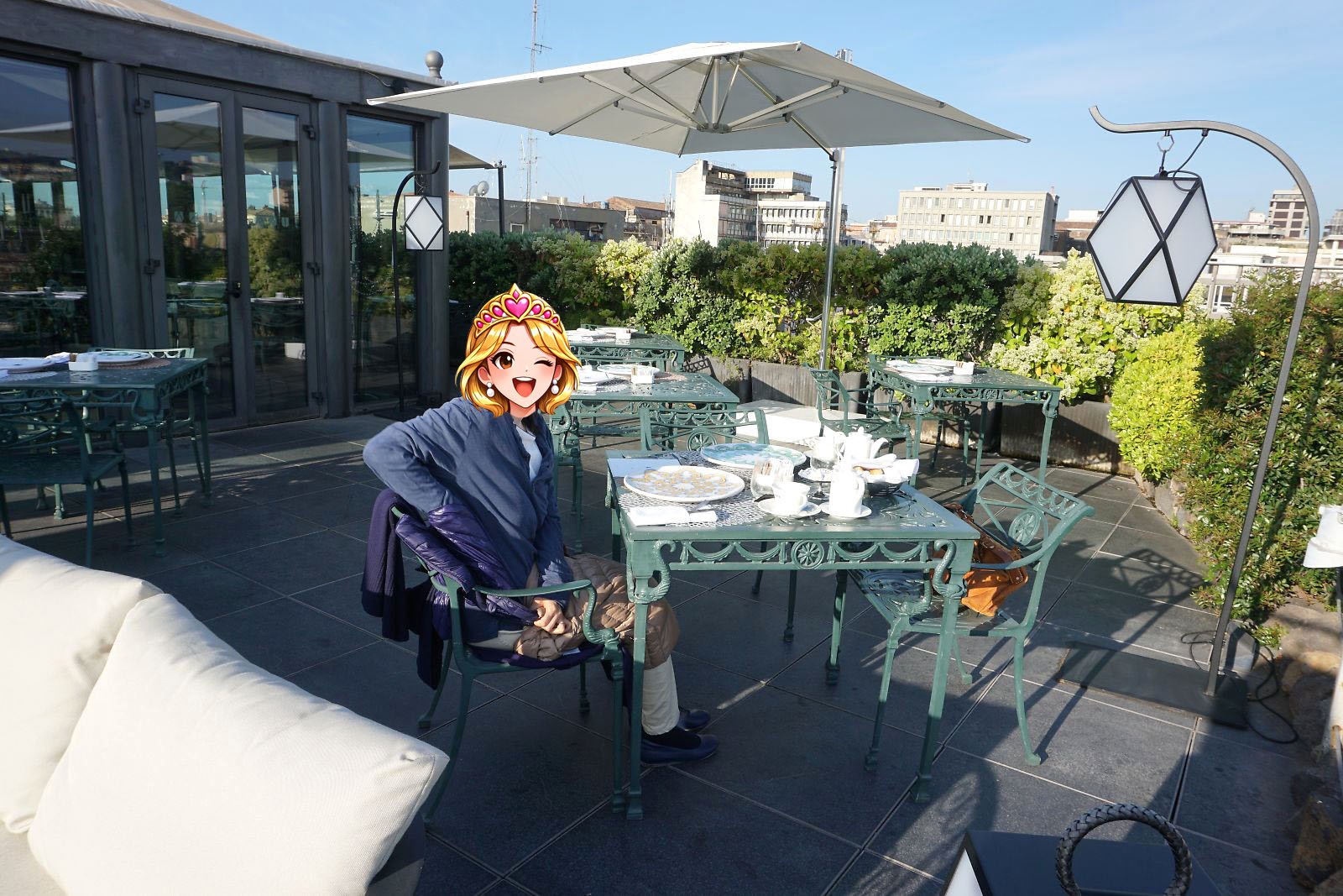 デフォルトは別の階のビュッフェ朝食だったが、屋上階でもOKとのこと。